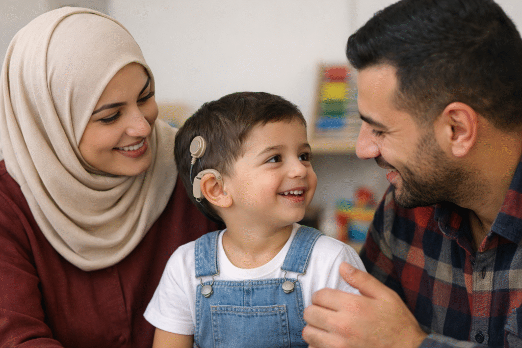 بعد أن يحقق الطفل وصولًا سمعيًا مثاليًا، فإنه يحتاج إلى تعرّض مكثف وهادف للغة المنطوقة. فاللغة تتطور من خلال التفاعل اليومي، والتكرار، والانخراط العاطفي. يُنصح الآباء بالتحدث باستمرار مع أطفالهم، ووصف الأنشطة اليومية، والحفاظ على حوارات مفتوحة. إذ تمثل كل نشاطات الروتين اليومي فرصة لتعلّم اللغة. قد تكون المراحل المبكرة صعبة، وقد يبدو التقدم بطيئًا. وهنا تبرز أهمية الإرشاد المهني ودعم الوالدين.